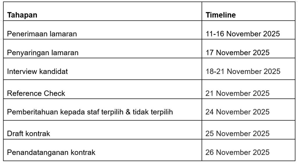 Batas Waktu penerimaan lamaran : 16 November 2025 pukul 17.00 WIB